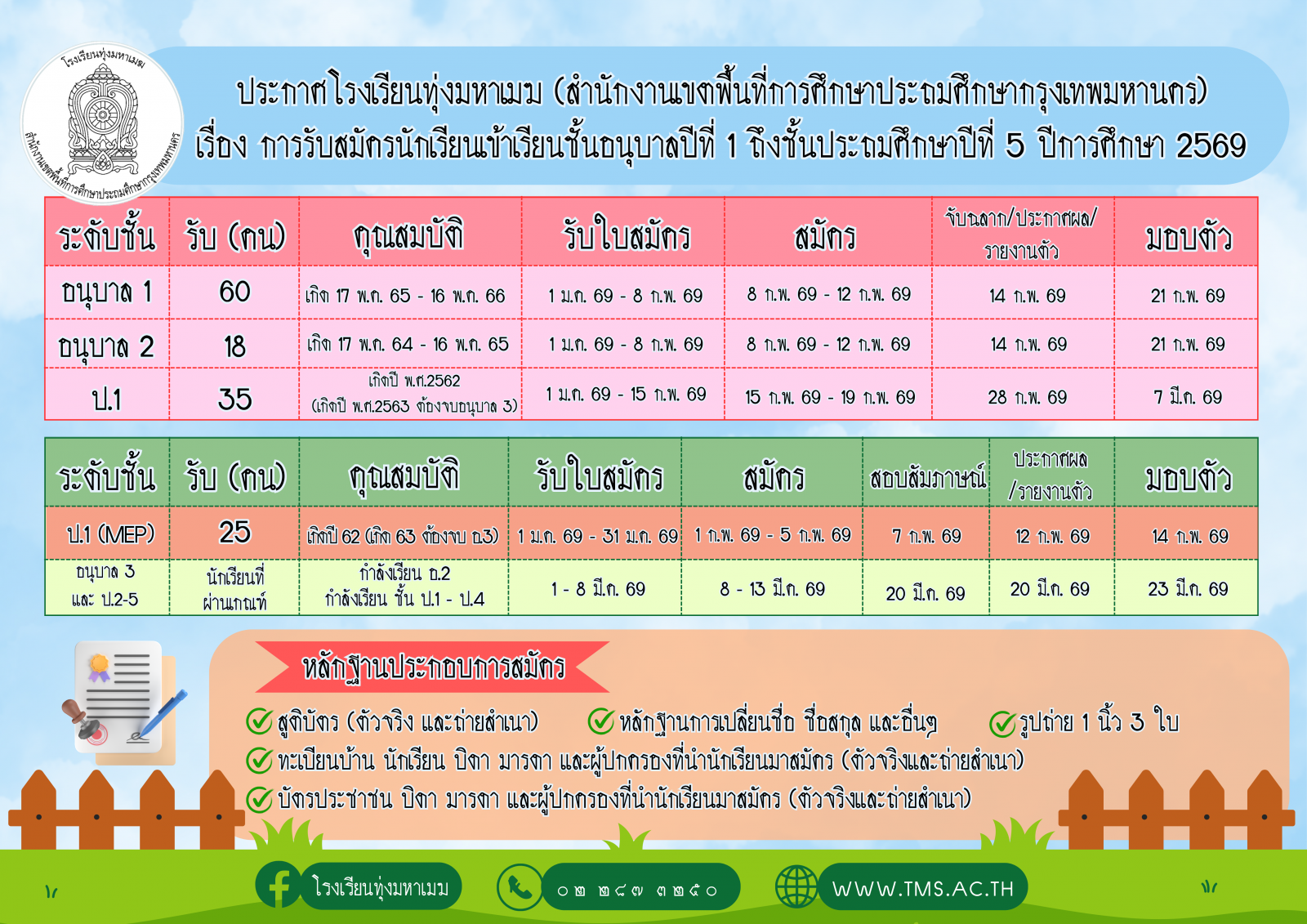 • ้เปิดรับสมัครนักเรียนโรงเรียนทุ่งมหาเมฆ