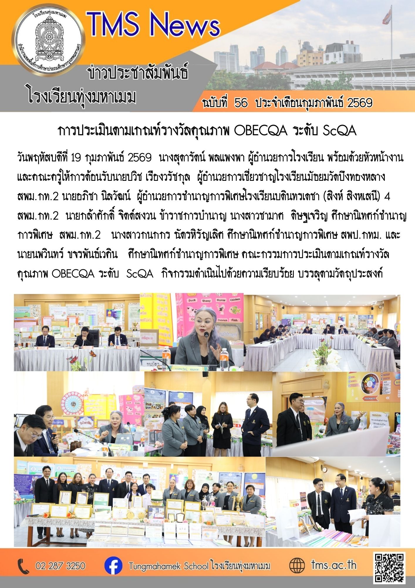 ประเมินตามเกณฑ์รางวัลคุณภาพ OBECQA ระดับ ScQA